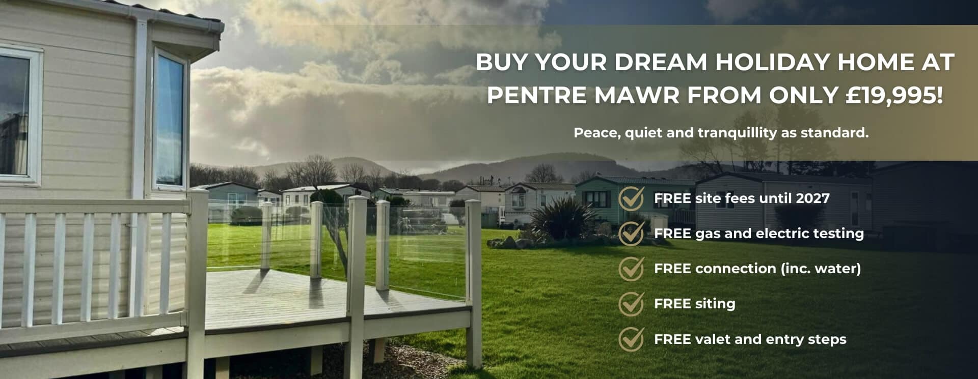 Situated in scenic North Wales, our static caravan park is open March - November (inclusive), and offers a peaceful environment. Discover our selection of caravans for sale on our small, tranquil site, providing an ideal setting for relaxation and exploration.
