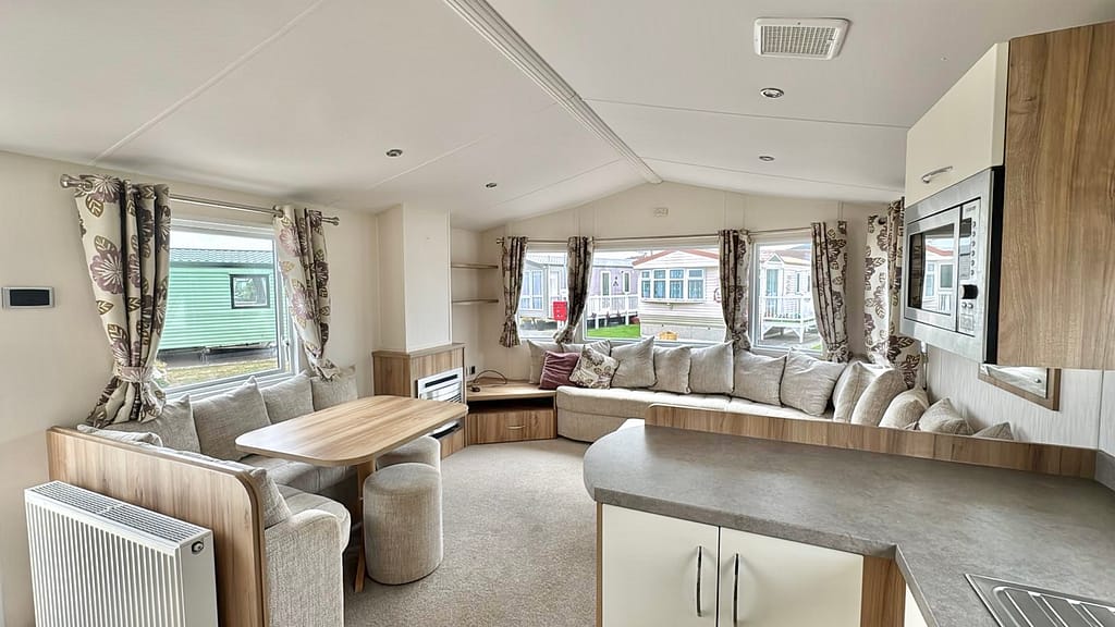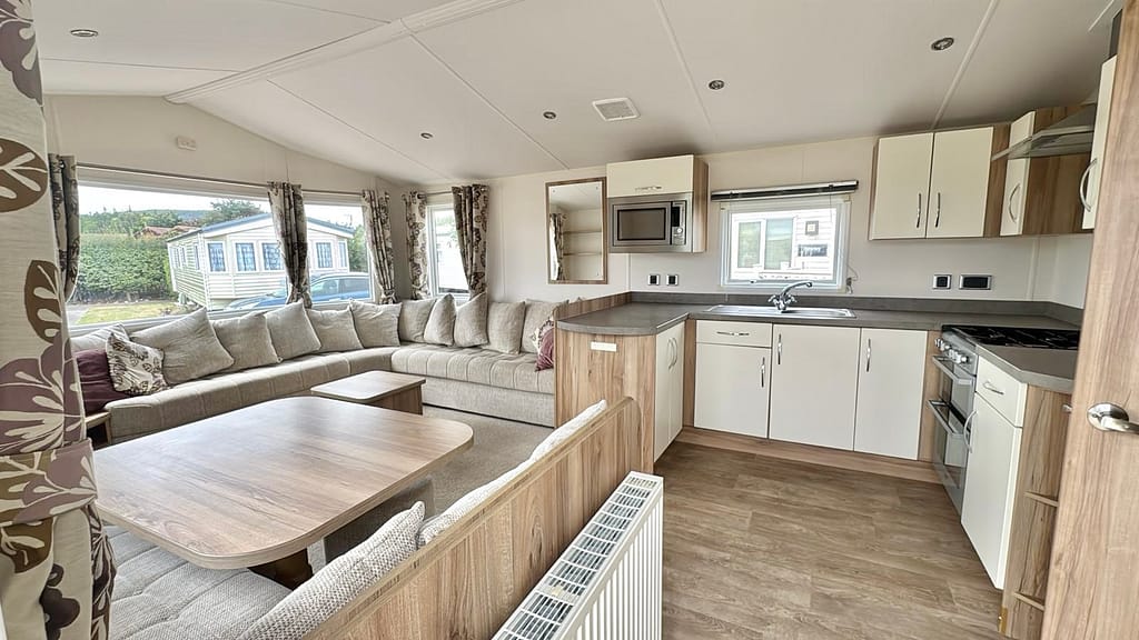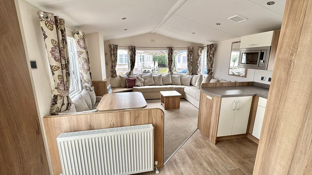 Description: The Rio Gold is an ideal space for entertaining family and friends, featuring a large open-plan lounge, a stylish freestanding TV unit, and a fire surround. The bright and functional kitchen offers various appliance configurations to suit your needs. The cozy bedrooms provide ample space and storage, while the family shower room is bright and airy. With its warm and welcoming atmosphere, the Rio Gold remains a popular choice for couples and families, thanks to its spacious and social living areas.