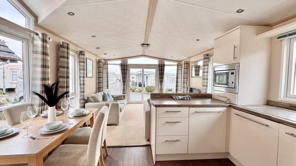 Description: The 2012 Pemberton Warwick is a beautifully designed 38 x 12 holiday home that offers a warm, homely feel with a touch of luxury. This 2‑bedroom model is known for its spacious layout and high‑quality finish, making it an excellent choice for both holiday living and extended stays. The lounge features large windows that fill the space with natural light, complemented by comfortable seating and a stylish electric fire. The well‑equipped kitchen includes ample storage, generous worktop space, and the added convenience of an integrated washing machine, making everyday living effortless. The master bedroom offers excellent wardrobe space and a calm, relaxing atmosphere, while the second bedroom is ideal for guests or family. With double glazing, central heating, and Pemberton’s renowned build quality throughout, the Warwick delivers comfort, practicality, and timeless style — a fantastic option for anyone seeking a well‑cared‑for, premium holiday home.