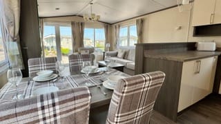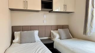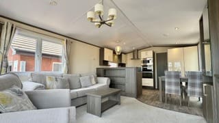 Description: The Regal Somerton 2016 is a stylish, well-equipped static caravan measuring 40ft x 13ft, designed for comfort and modern holiday living. Key features include: - Exterior: Sleek pitched roof, French doors, aluminium cladding, and optional decking. - Lounge: Spacious with vaulted ceilings, large windows, stylish furniture, and a feature fireplace. - Kitchen/Dining: High-gloss units, integrated appliances, and optional dishwasher/washing machine. - Bedrooms: One master with ample storage and en-suite; one twin room with wardrobes and TV point. - Bathrooms: Family shower room and compact en-suite in the master bedroom. Overall, it combines smart design and luxury finishes, making it a great choice for families or couples seeking a premium holiday home.
